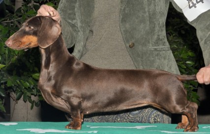 CH Lucene's American Idol "Kelly" DOB: 6/26/2009 Sire: BISS GCh. Lucene's Merlin Dam: Ch. Lucene' Fire Dancer, ROM Kelly at 8 mos old is winning here first points going BOW and BOS at the San Diego Dachshund Club show on 3/19/2010 from the 6-9 month puppy class under judge Mrs Joan Frailey. Kelly Sire is Ch. Lucene's Merlin who aslo won BOV the same day. Two more wins with majors and Kelly finished her championship at the Hound Classic. April 16,2011: Judge Mr. Eugene Blake gave Kelly BOB from the class for a 4 pt major. April 17, 2011: Judge Mr. Timothy Robbins gave BOW for her last 3 pt major. Kelly litter born 8/8/12 with 9 puppies |